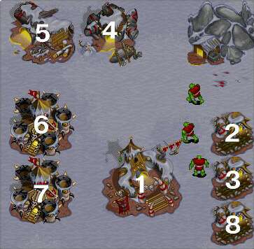 Это примерная схема постройки для одного из квадратов на сценарии Nowhere to run, Nowhere to hide. Числами обозначена последовательность строительства зданий